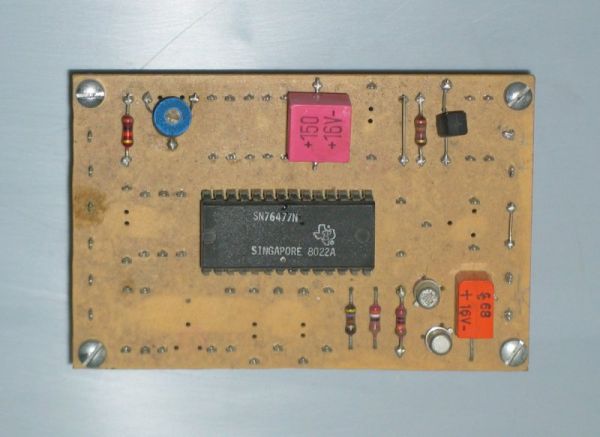 Anfang der 80iger Jahre des letzten Jahrhunderts habe ich nach der Vorlage eines Elektor-Artikels (ZIP-Datei) eine kleine "Universalplatine" mit der man verschiedenste Beschaltungen des SN76477 realisieren kann nachgebaut.