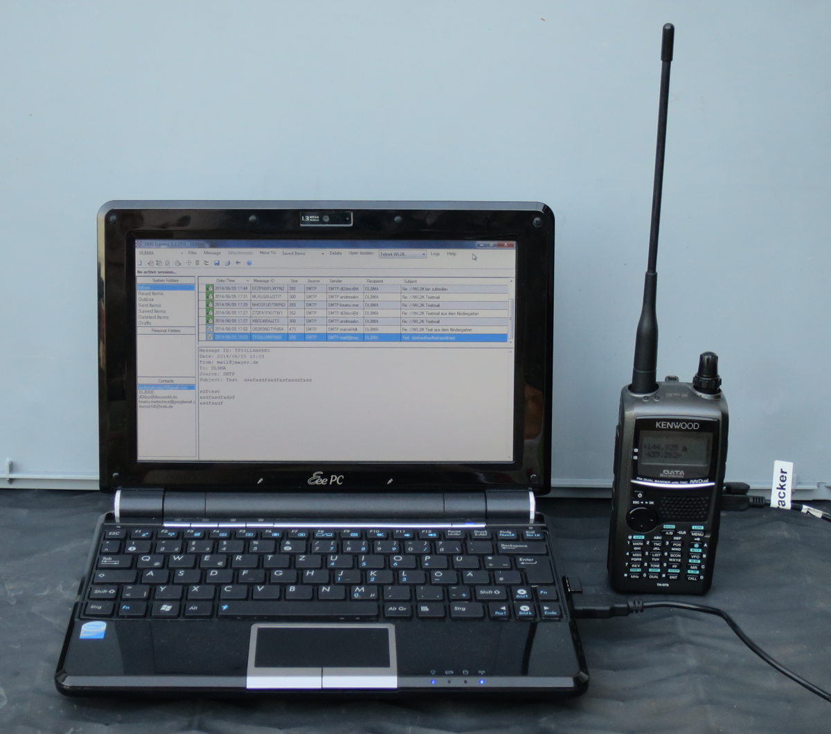 Mit einer solchen Station kann man, wenn ein RMS-Paket-Server erreichbar ist, Emails empfangen und versenden. Die komplette Station kann aus einem 12V-Akku versorgt werden.